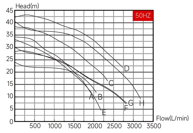 A - 100VK-155; B - 100VK-205; C - 100VK-255; D - 100VK-305; E - 125VK-155; F - 125VK-205; G - 125VK-255; H - 125VK-305